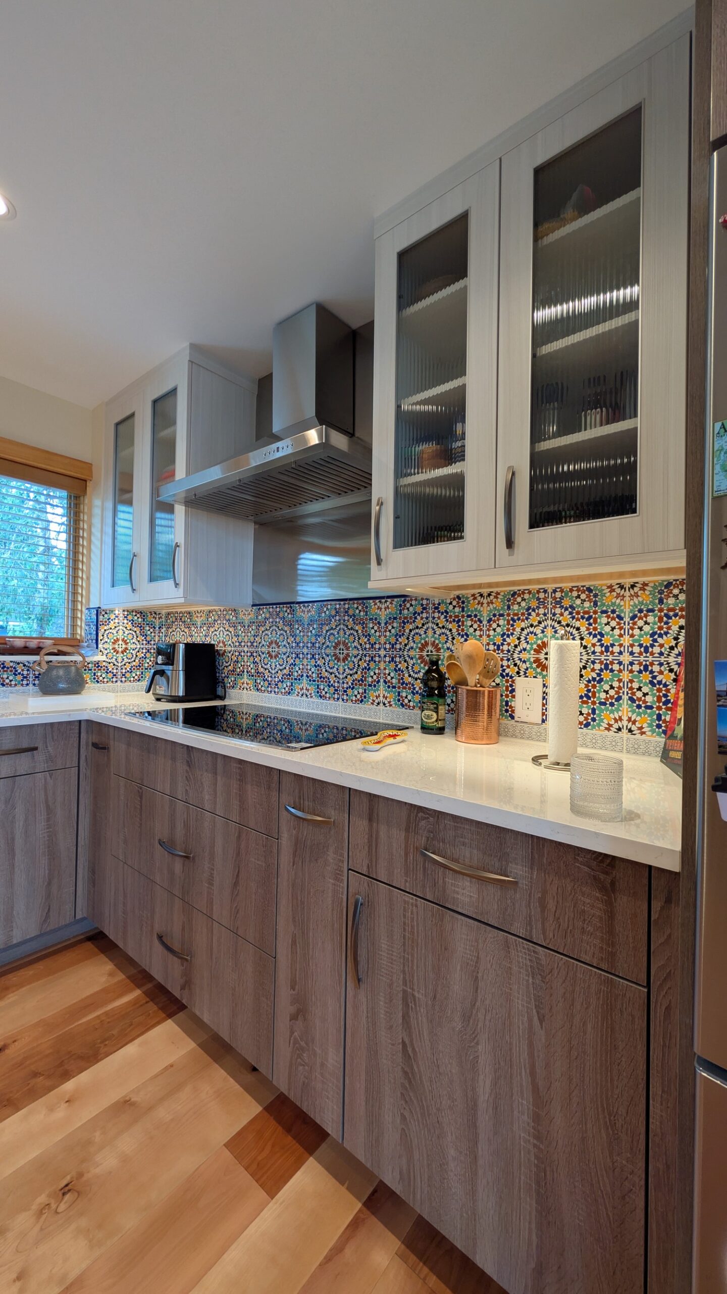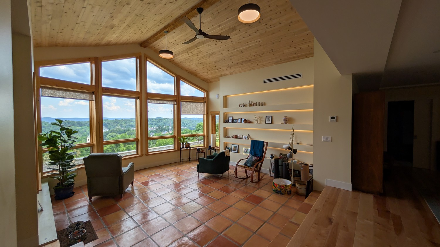 This project was particularly rewarding. Our client, an architect, entrusted us with transforming an unusual and restrictive house situated on an incredible site into a warm, light-filled home bursting with views and color. Early in the renovation, we discovered the existing structure was in very poor condition. With our client’s full support, we rebuilt the entire house, carefully preserving the neighborhood’s original scale and character—an essential aspect of the design.